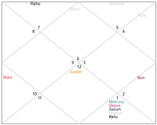 | Rahu | 7 Scorpio 6 | 23 Pisces 43 | 2 Scorpio 33 |