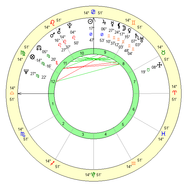 | Sun | 17 Cancer 47 | 18 Cancer 41 | 7 Libra 53 |