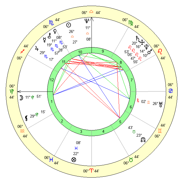 | Jupiter | 29 Scorpio 12 | 24 Cancer 23 | 16 Sagittarius 16 |