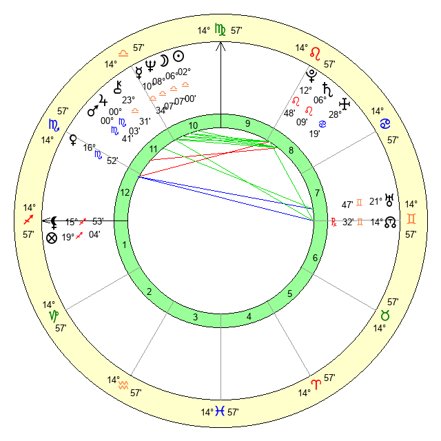 | Venus | 16 Scorpio 52 | 7 Virgo 34 | 17 Scorpio 40 |