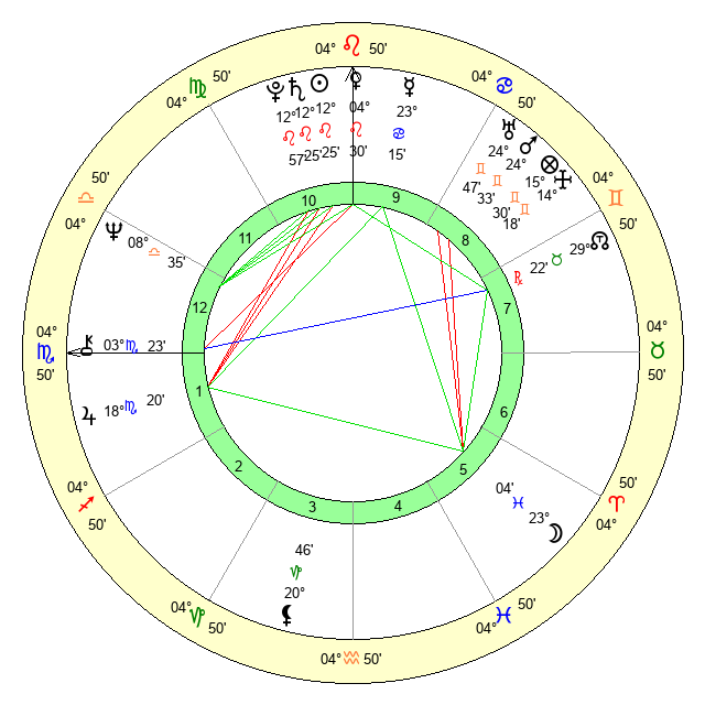 | Mercury | 23 Cancer 16 | 5 Leo 52 | 20 Scorpio 53 |