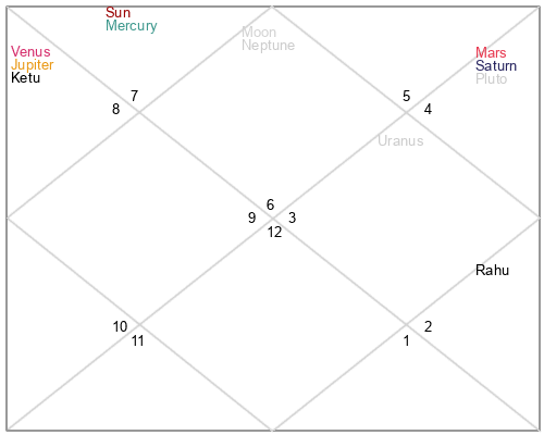 | Ketu | 23 Scorpio 32 | 14 Virgo 53 | 19 Scorpio 24 |