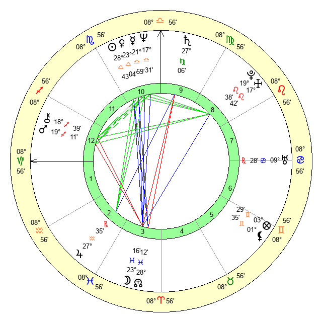 | Saturn | 27 Virgo 34 | 26 Pisces 10 | 2 Libra 50 |