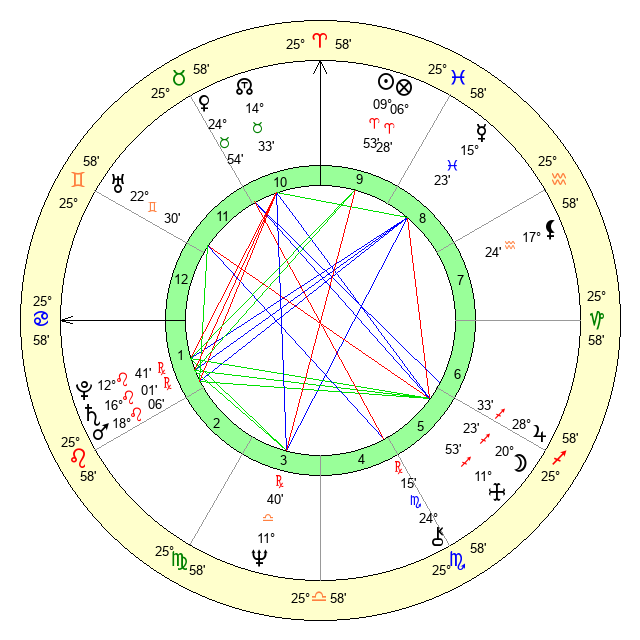 | Mars | 18 Leo 6 | 23 Cancer 11 | 12 Virgo 49 |