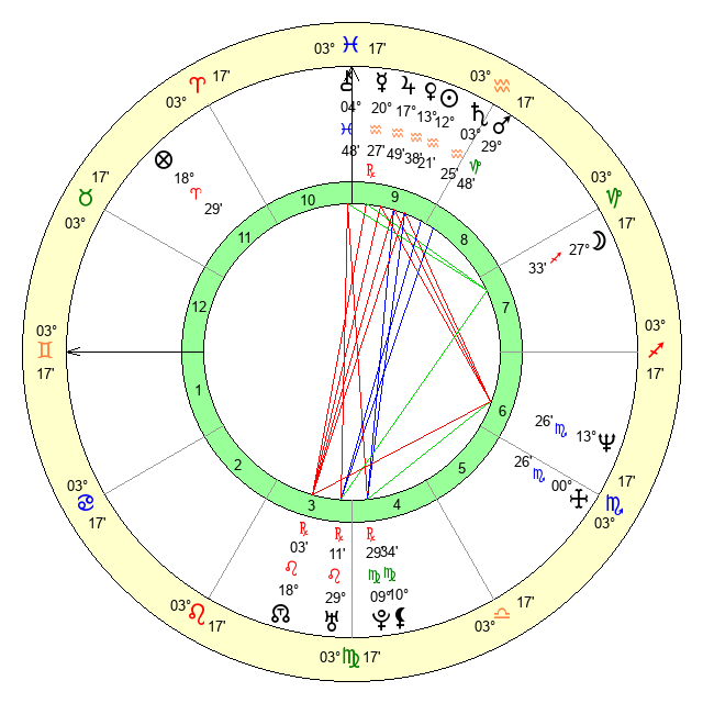 | Jupiter | 17 Aquarius 41 | 11 Gemini 17 | 2 Pisces 8 |