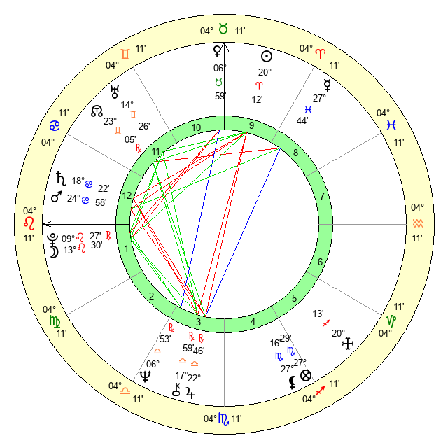 | Moon | 13 Leo 34 | 25 Virgo 48 | 29 Gemini 54 |