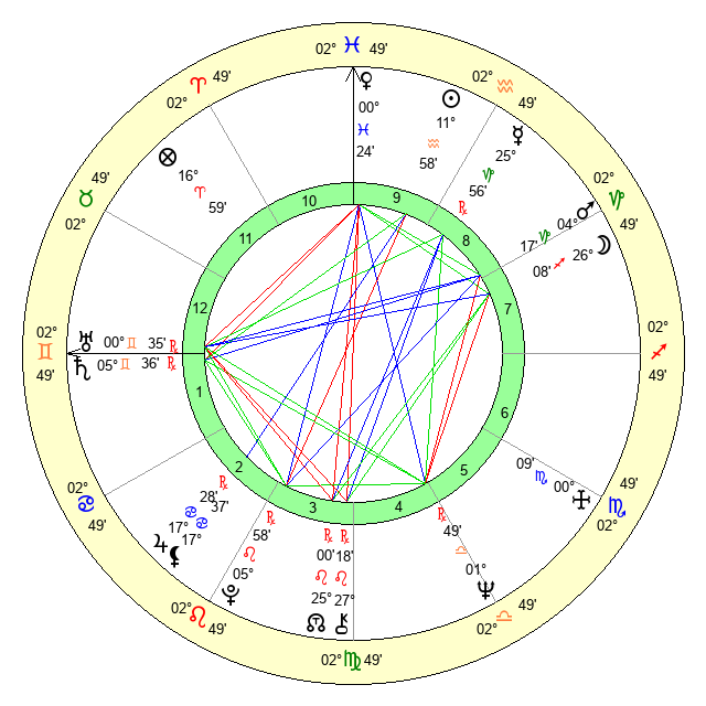 | Saturn | 5 Gemini 54 | 17 Pisces 26 | 10 Gemini 49 |