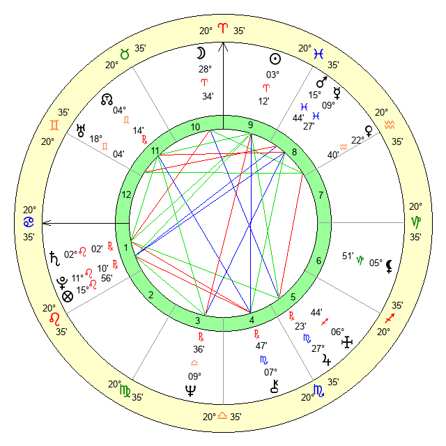 | Jupiter | 27 Scorpio 16 | 14 Gemini 54 | 19 Scorpio 21 |