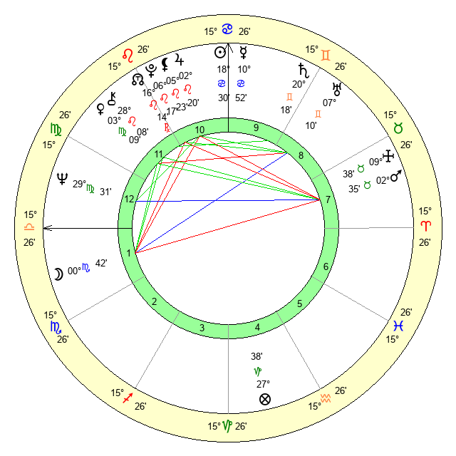 | Sun | 18 Cancer 30 | 19 Cancer 38 | 7 Libra 38 |