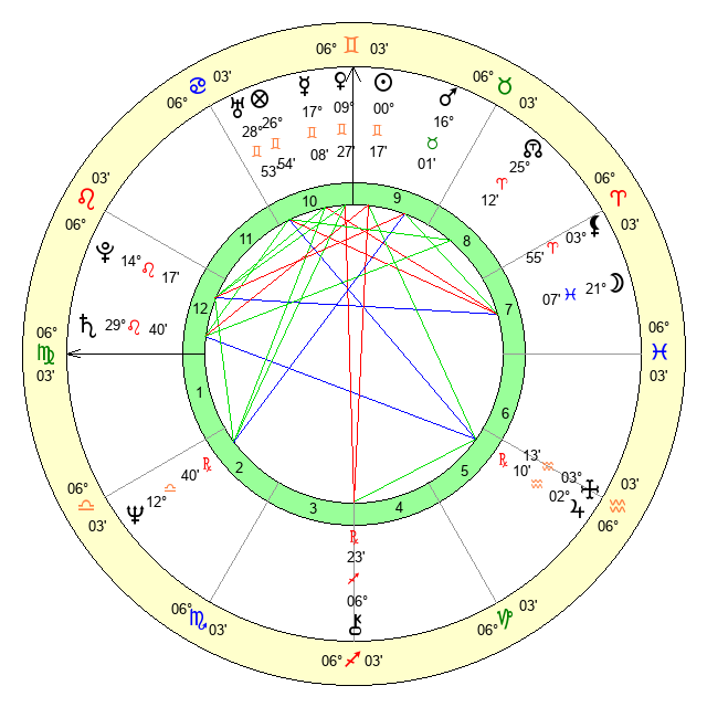 | Saturn | 0 Virgo 10 | 29 Pisces 38 | 6 Virgo 36 |