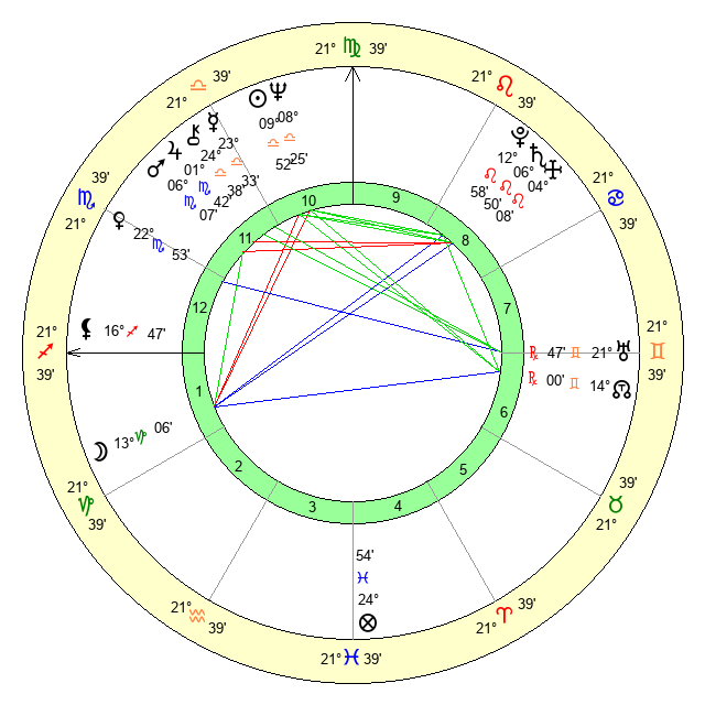 | Venus | 22 Scorpio 53 | 17 Virgo 24 | 20 Scorpio 24 |