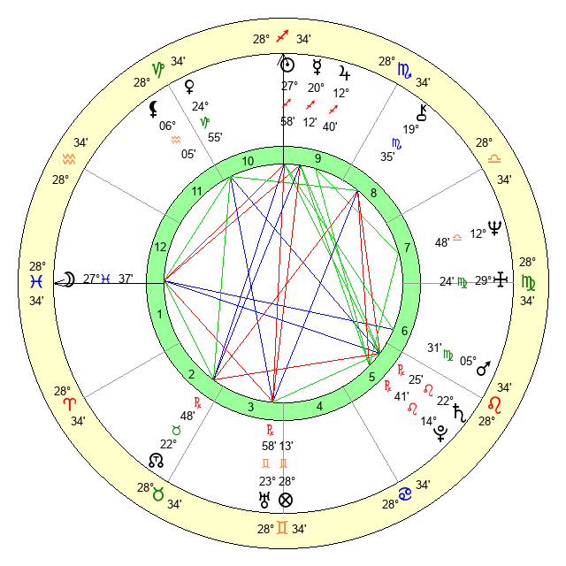 | Moon | 27 Pisces 38 | 6 Capricorn 10 | 12 Aquarius 7 |