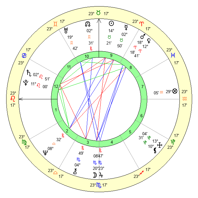 | Moon | 20 Scorpio 0 | 28 Leo 42 | 1 Libra 31 |