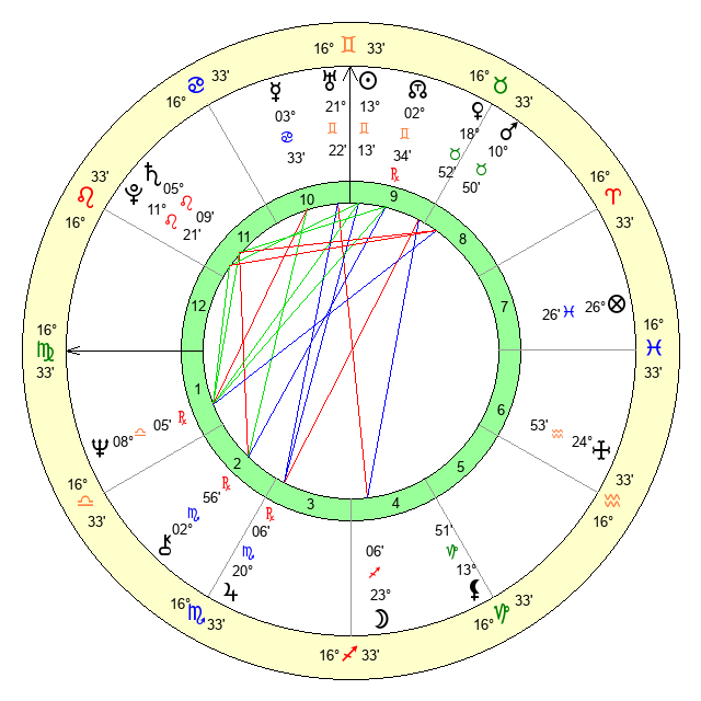 | Sun | 13 Gemini 13 | 14 Gemini 19 | 27 Leo 47 |