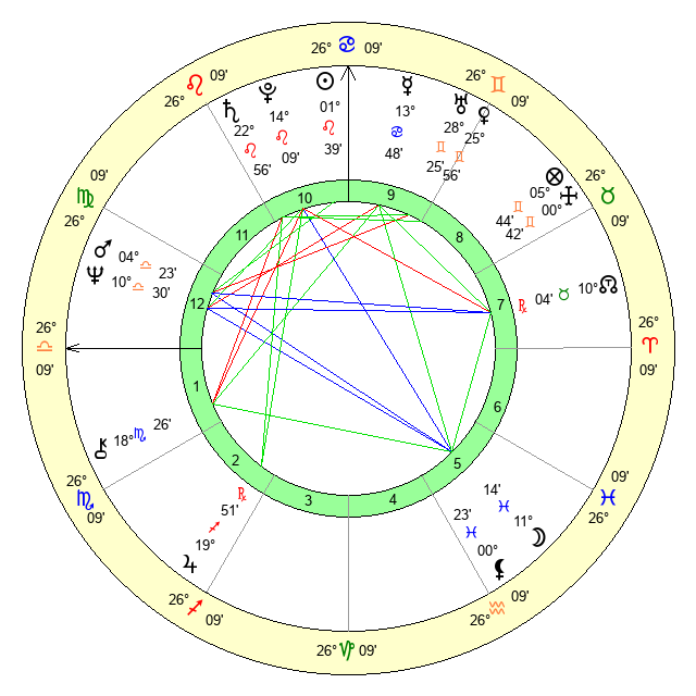 | Sun | 1 Leo 40 | 2 Leo 3 | 16 Libra 18 |