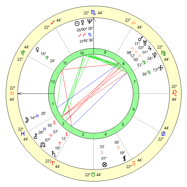 | Moon | 14 Pisces 21 | 28 Aquarius 44 | 14 Aries 44 |