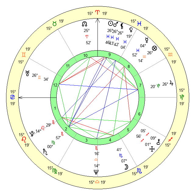 | Mars | 26 Pisces 43 | 19 Cancer 37 | 24 Taurus 1 |