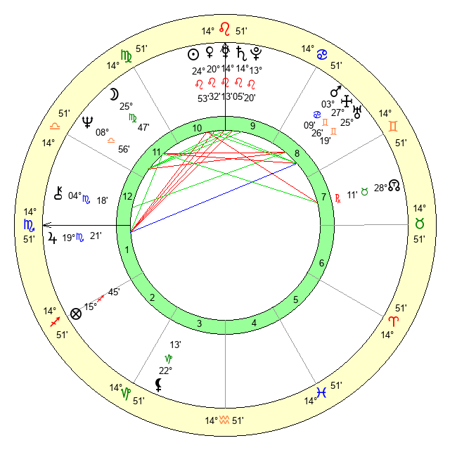| Sun | 24 Leo 54 | 26 Leo 0 | 11 Scorpio 26 |