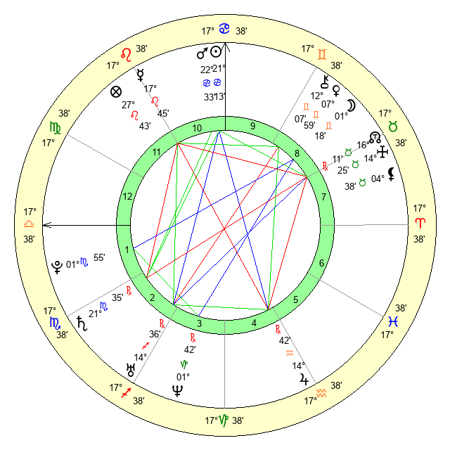 | Pluto | 1 Scorpio 55 | 2 Aquarius 51 | 2 Scorpio 24 |
