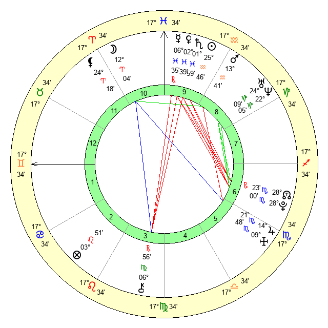 | Mercury | 6 Pisces 34 | 0 Pisces 23 | 29 Aquarius 14 |