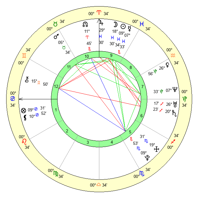 | Mars | 5 Taurus 34 | 17 Cancer 9 | 1 Gemini 21 |