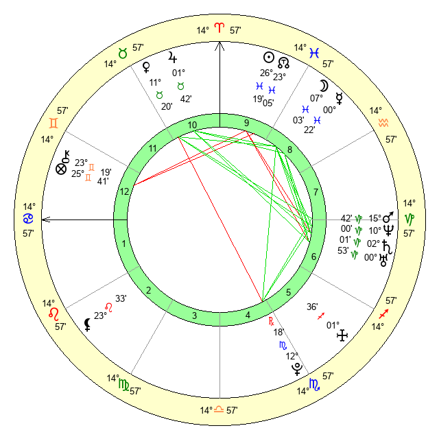 | Moon | 7 Pisces 11 | 22 Libra 44 | 19 Cancer 11 |