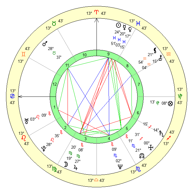 | Neptune | 2 Scorpio 9 | 29 Pisces 26 | 0 Scorpio 25 |