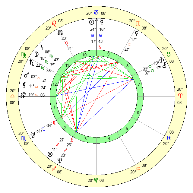 | Sun | 24 Cancer 17 | 24 Cancer 25 | 7 Virgo 27 |