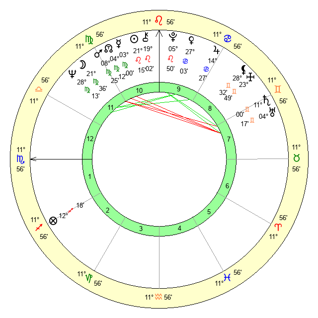 | Sun | 21 Leo 15 | 22 Leo 9 | 12 Scorpio 39 |