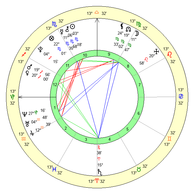 | Moon | 11 Virgo 50 | 0 Capricorn 6 | 19 Virgo 57 |