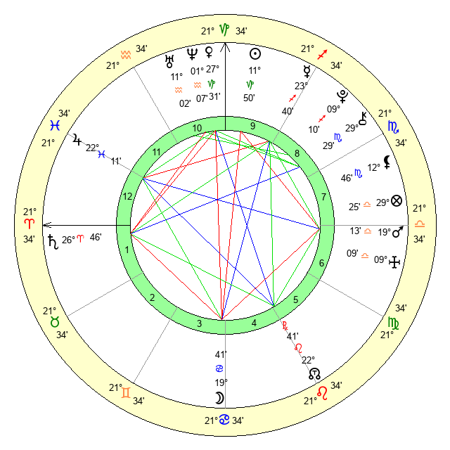 | Jupiter | 22 Pisces 16 | 13 Gemini 1 | 26 Pisces 52 |
