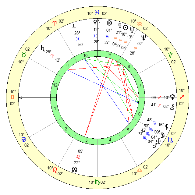 | Moon | 9 Scorpio 47 | 19 Gemini 48 | 23 Libra 41 |