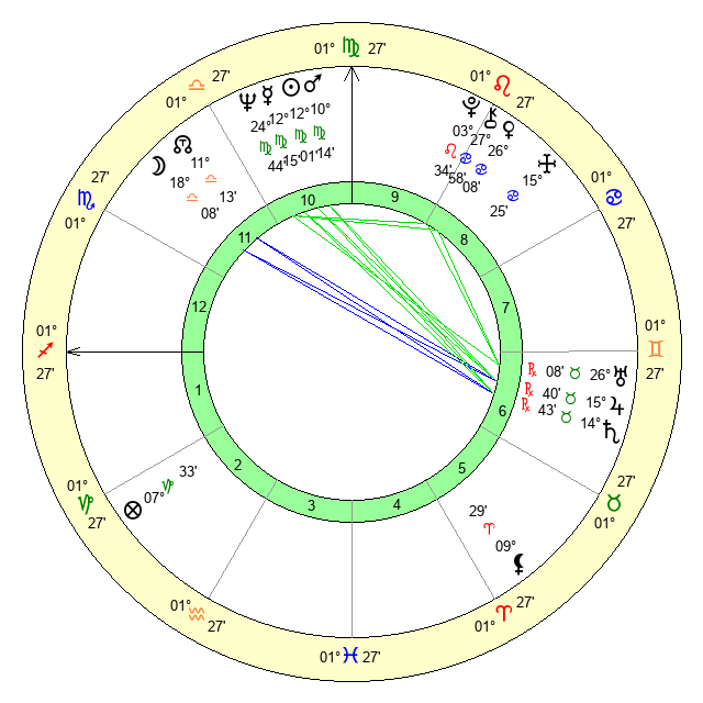 | Mercury | 12 Virgo 16 | 4 Virgo 13 | 16 Scorpio 20 |