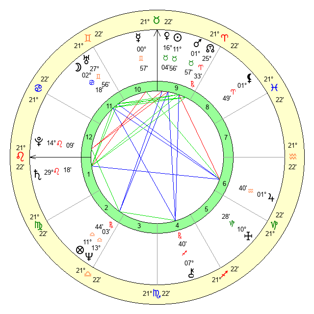| Mars | 1 Taurus 57 | 6 Leo 23 | 26 Gemini 16 |