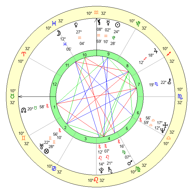 | Moon | 12 Pisces 8 | 17 Leo 19 | 14 Capricorn 50 |