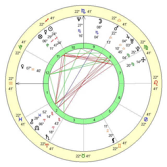 | Moon | 8 Scorpio 12 | 9 Cancer 10 | 27 Scorpio 29 |