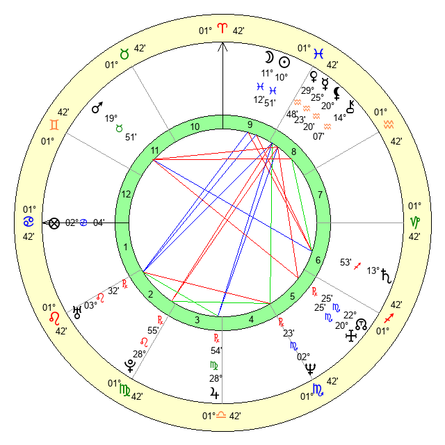 | Moon | 11 Pisces 13 | 4 Aries 18 | 9 Virgo 16 |