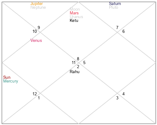 | Rahu | 10 Gemini 15 | 27 Pisces 16 | 8 Gemini 5 |