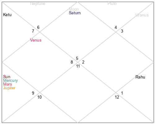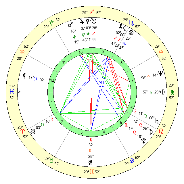 | Saturn | 6 Virgo 41 | 25 Pisces 31 | 2 Virgo 14 |