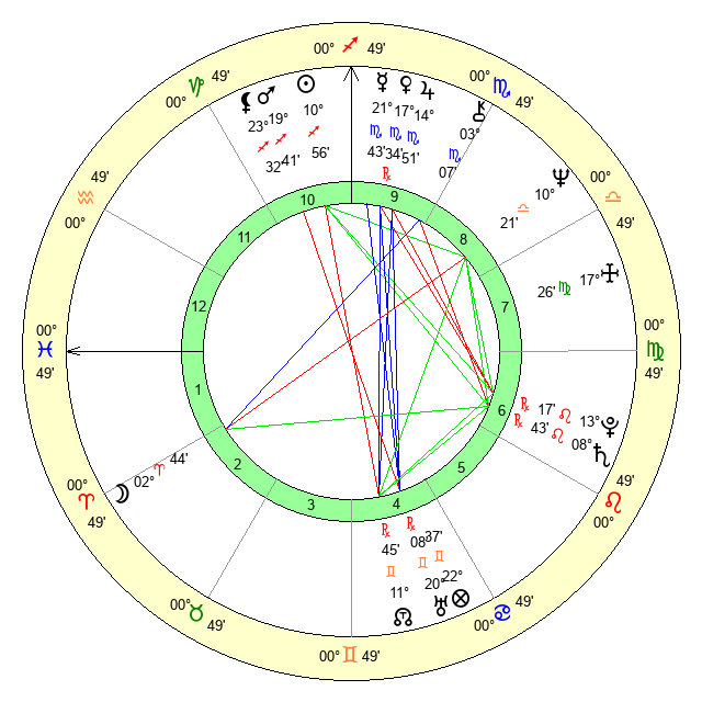 | Moon | 2 Aries 47 | 23 Taurus 50 | 26 Aquarius 54 |