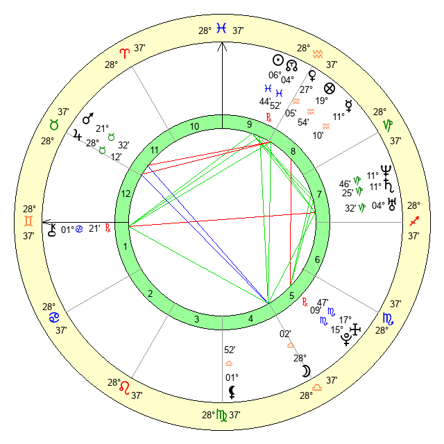 | Sun | 6 Pisces 44 | 7 Pisces 0 | 12 Aries 36 |