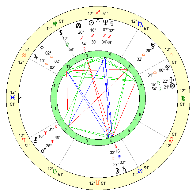 | Moon | 27 Gemini 23 | 5 Virgo 12 | 16 Taurus 24 |