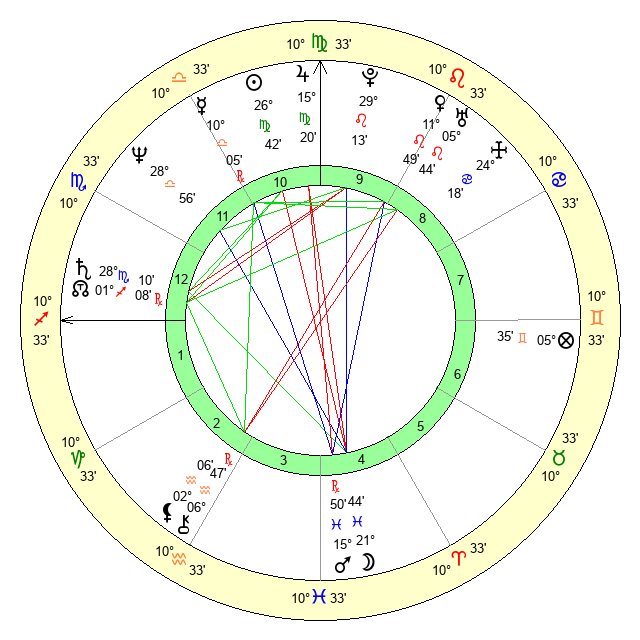 | Moon | 21 Pisces 50 | 2 Virgo 17 | 9 Libra 29 |