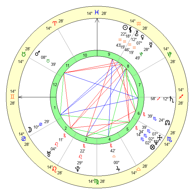 | Neptune | 2 Scorpio 34 | 28 Pisces 17 | 1 Scorpio 15 |