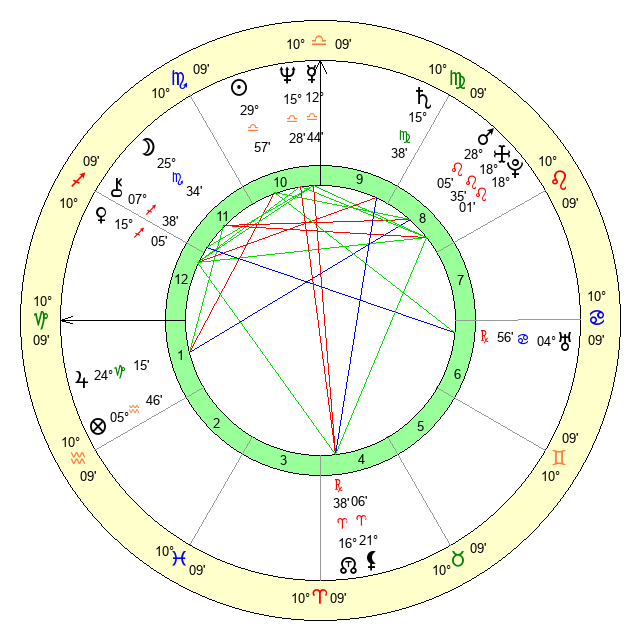 | Moon | 25 Scorpio 30 | 24 Scorpio 27 | 28 Leo 42 |