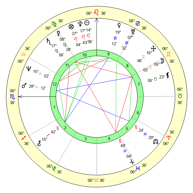 | Sun | 14 Leo 36 | 15 Leo 26 | 27 Libra 44 |