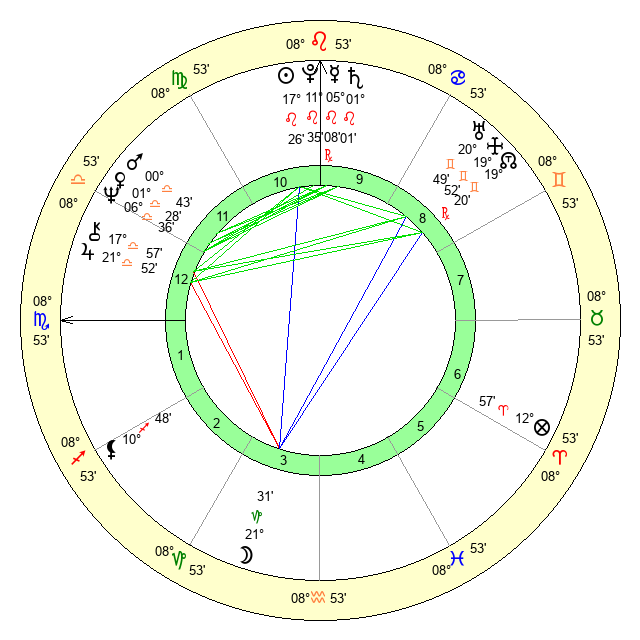 | Mars | 0 Libra 44 | 2 Libra 20 | 23 Scorpio 32 |