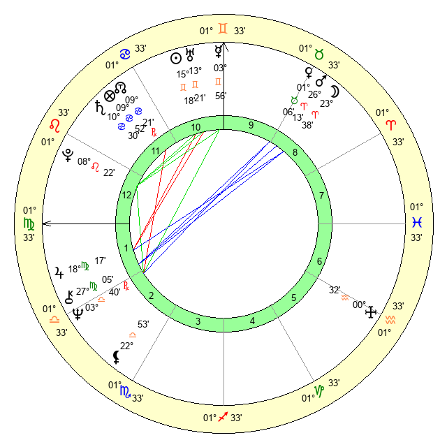 | Mercury | 3 Gemini 58 | 24 Gemini 45 | 23 Leo 32 |