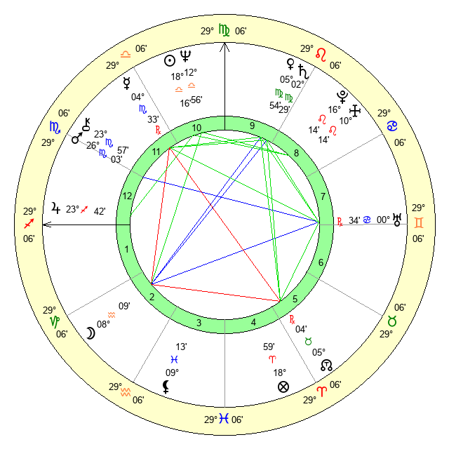 | Saturn | 2 Virgo 57 | 26 Pisces 52 | 6 Virgo 36 |