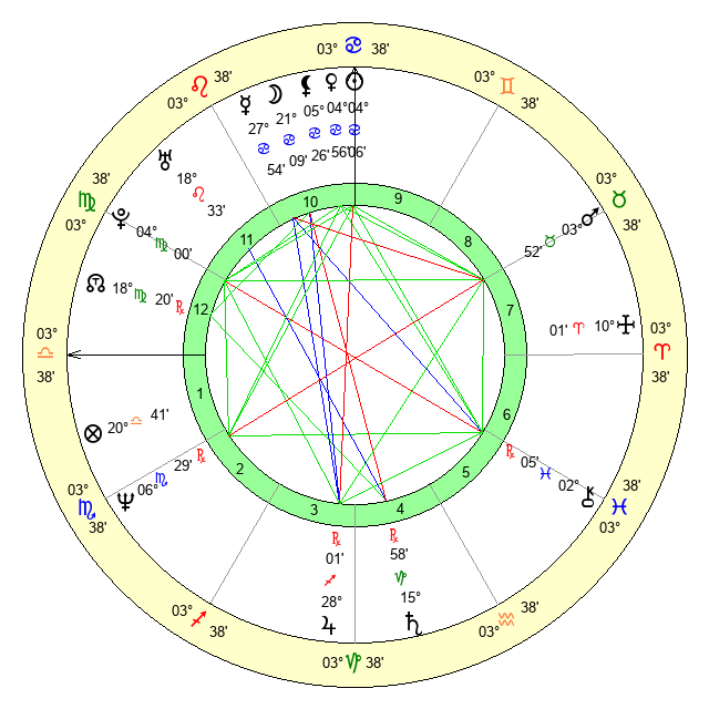 | Mercury | 27 Cancer 54 | 28 Cancer 33 | 5 Virgo 5 |